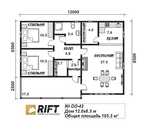 Каркасный дом DG42 — современный проект загородного дома с оптимальной площадью 102 м² и с размерами 8,5×12 м. Подходит для комфортного проживания. Срок строительства — 45 дней. Предусмотрены базовая и премиум комплектации, установка свайно-винтового фундамента, утепление и подключение коммуникаций. Возможна поэтапная оплата, ипотека и использование материнского капитала.
